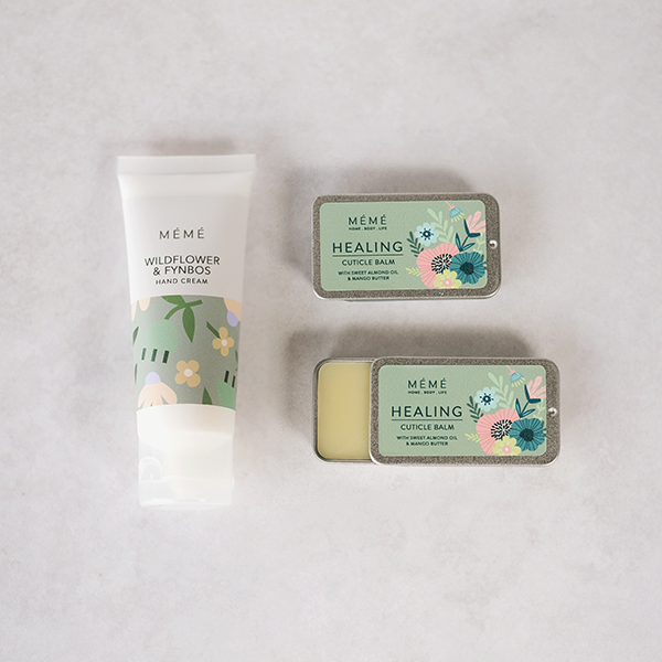 One Wildflower & Fynbos hand cream tube and one cuticle balm tin.